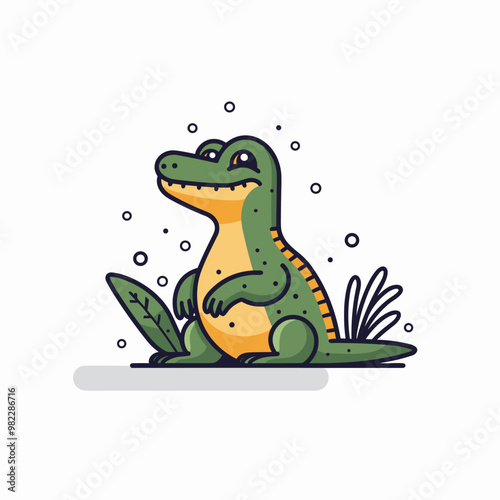 © B-design, Naklejka premium Alligator hand-drawn kids comic illustration. Cute vector doodle style cartoon illustration