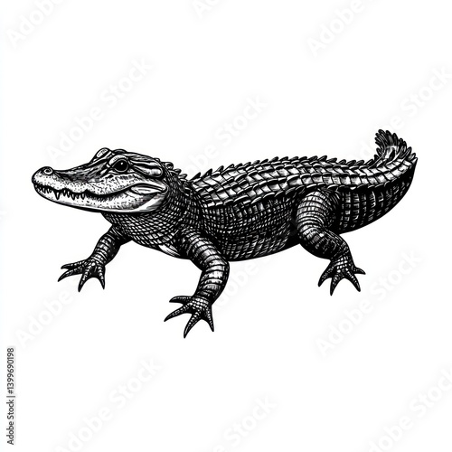 Obraz premium Alligator illustration, wildlife, reptile, nature, white background, for educational use