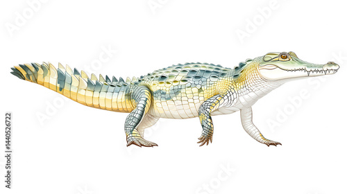 © T.Raw Visuals, Naklejka premium Alligator illustration with rebg 100 design on a white background.
