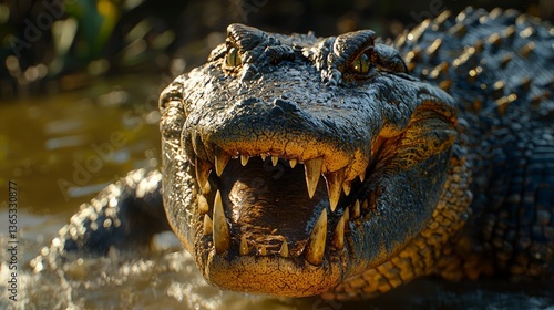 © Raena, Obraz premium Alligator in Marsh, Open Jaws, Close-Up