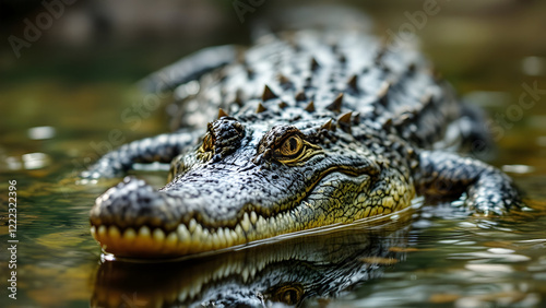 © Lani Rhanonjena, Obraz premium Alligator resting in water