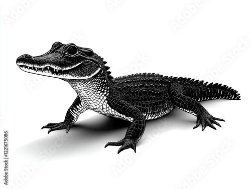 © CHAIYAPHON, Fototapeta premium alligator silhouette vector black on white background