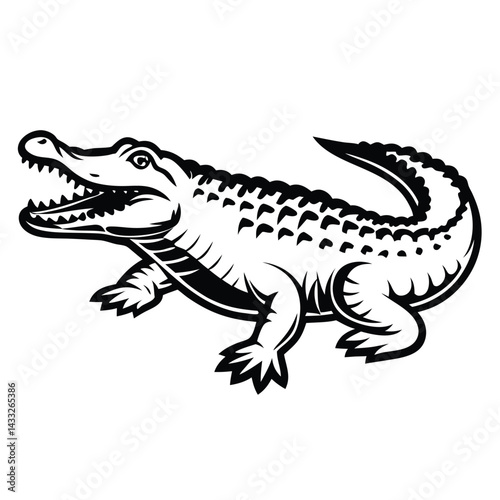 Naklejka premium Alligator with Open Mouth Silhouette in Black and White on Isolated Background