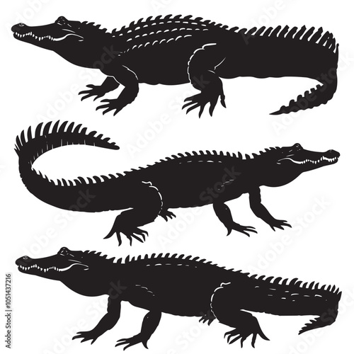 © Vector Stock, Fototapeta premium Alligators silhouette isolated in White background