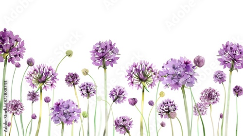 © Sirirat, Naklejka premium Allium frame clipart, flower border, watercolor illustration, purple and green, isolated on white background,