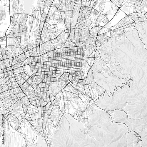 © Knut Hebstreit, Fototapeta premium Almaty Area Map with Labels and Neighborhoods - One color, minimalistic design