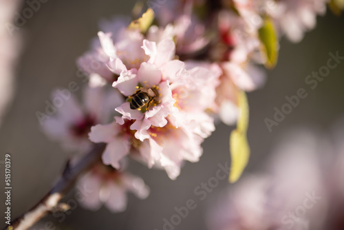© Sergio Capture, Fototapeta premium Almendro en flor con abeja 3