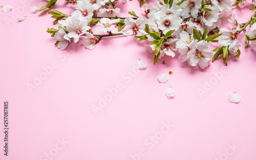 © Rawf8, Obraz premium Almond kwitnie bukiet na różowym tle, kopia przestrzeń