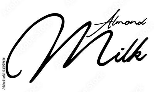 © Pleasant Mode, Obraz premium Almond Milk Handwritten Font Calligraphy Black Color Text on White Background