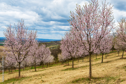 Obraz premium Almond orchard in bloom, Hustopece village, Czech