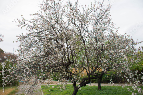 Fototapeta premium almond tree blossomed in a winter landscape