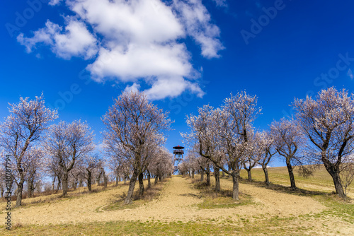 Obraz premium Almond tree orchard in Hustopece, South Moravia, Czech Republic