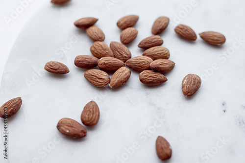© ANNA LEMAN, Obraz premium Almonds and white marble tray