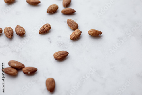 © ANNA LEMAN, Obraz premium Almonds and white marble tray