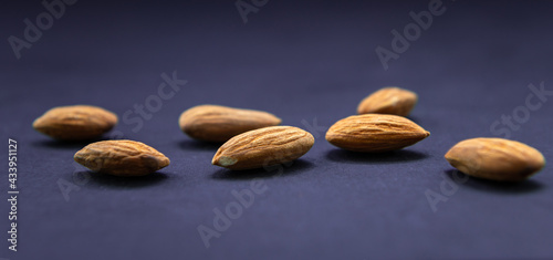 Obraz premium Almonds closeup isolated in blue backround.