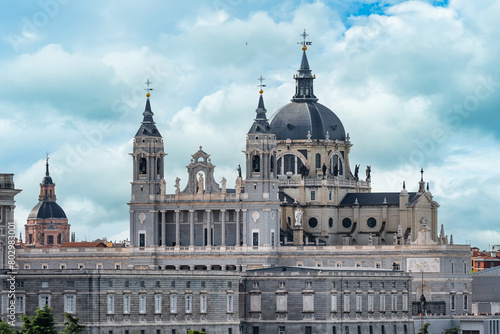 © josemiguelsangar, Obraz premium Almudena Cathedral that rises majestically over the city of Madrid, Spain.