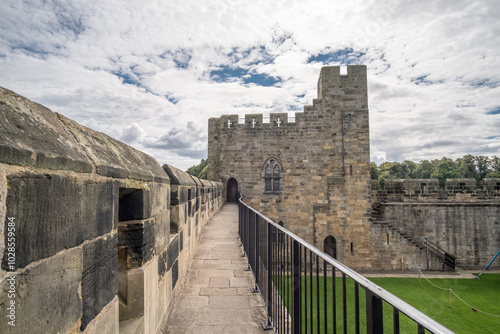© moomusician, Fototapeta premium Alnwick, England - 5 August 2017: Alnwick Castle in Alnwick in the English county of Northumberland, United Kingdom. It is a location for films and programs.