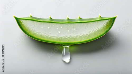 Fototapeta premium Aloe vera leaf cut open, showcasing its hydrating gel and dripping moisture
