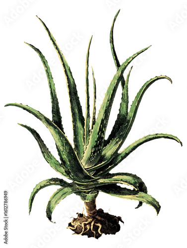 © nicole, Fototapeta premium Aloe vera leaf isolated on transparent background, vintage illustration.