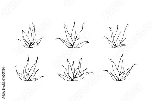© Sumi Khanom, Fototapeta premium Aloe Vera leaf line art illustration