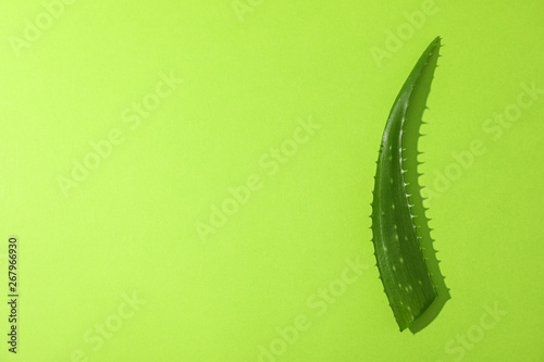 © Atlas, Naklejka premium Aloe vera leaf on color background, space for text. Natural treatment