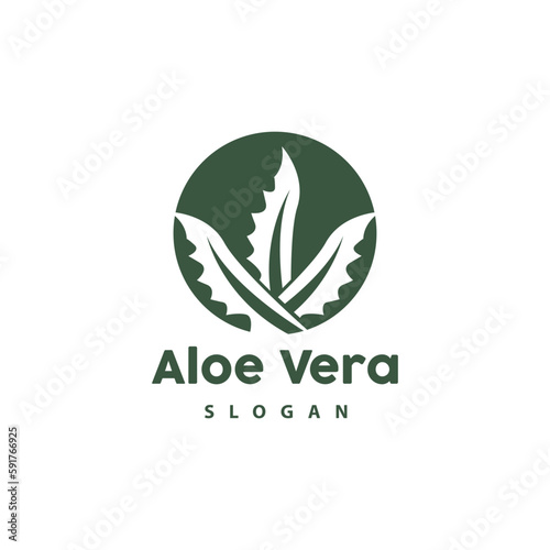 © Mayliana, Obraz premium Aloe Vera Logo, Herbal Plant Vector, Illustration Symbol Icon Simple Design