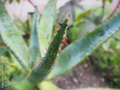Naklejka premium Aloe Vera Pflanze Nahaufnahme einer Spitze mit Dornen, botanischer Garten Köln