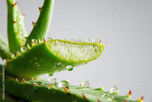 © Nuttakorn, Naklejka premium Aloe vera plant close-up indoor image of nature minimalist environment macro view natural healing properties