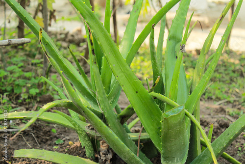 © Sadasiba, Obraz premium Aloe vera plant growing at filed close-up view