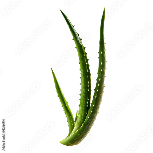 © PNG King, Naklejka premium Aloe vera plant with long green leaves growing upward indoors, transparent