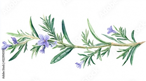 Naklejka premium Aloe Vera Rosemary Watercolor Isolated on White Background