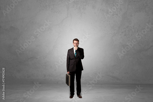 Fototapeta premium Alone businessman standing in a dark room