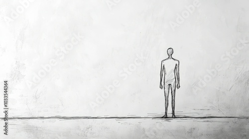 Fototapeta premium Alone figure. Hand-drawn sketch of a person standing alone, symbolizing isolation and introspection.