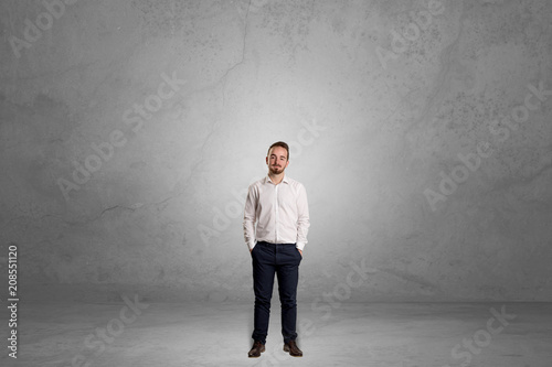 Fototapeta premium Alone handsome businessman standing in a dark empty room