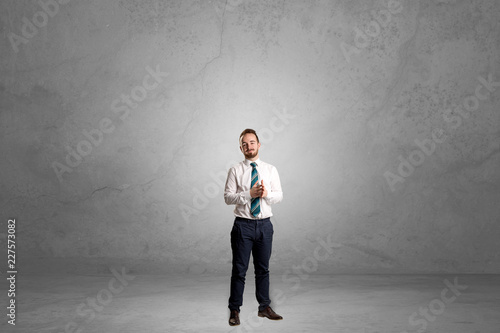 Obraz premium Alone handsome businessman standing in a dark empty room