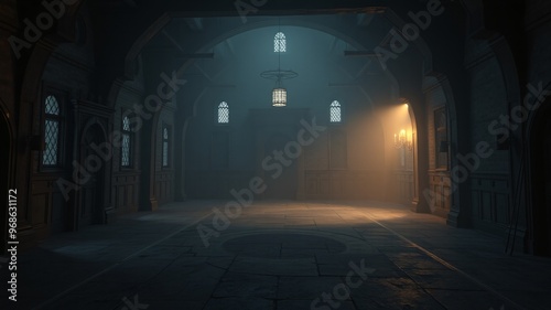 © Hirzan, Obraz premium alone in the backrooms liminal space 3d render
