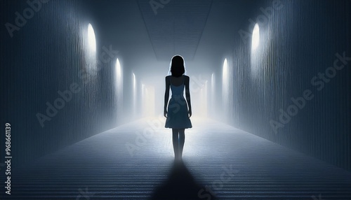 © Hirzan, Obraz premium alone in the backrooms liminal space 3d render