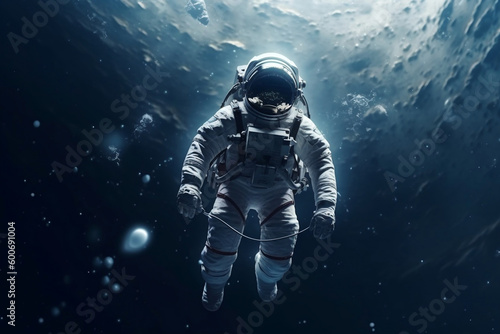Fototapeta premium Alone levitating astronaut in starry deep space generative ai