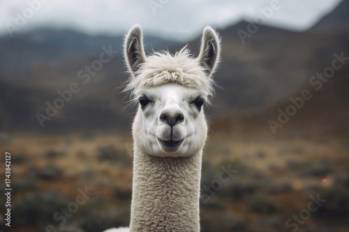 © AkuAku, Obraz premium Alpaca gazing directly at the lens