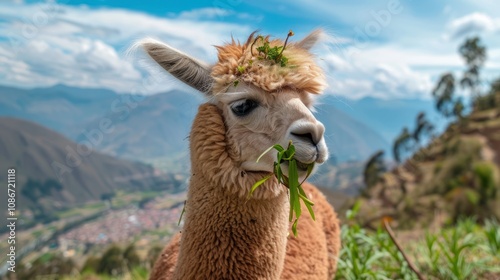 © Gajah, Obraz premium Alpaca Grazing in the Andes