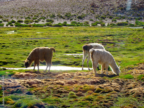 © Diego, Naklejka premium Alpaca heard feeding in the Atacama region