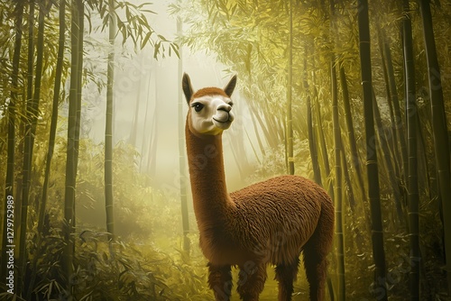 © JBMotillon, Fototapeta premium Alpaca in a Bamboo Forest Landscape