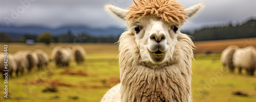 © Michal, Obraz premium Alpaca portrait with brown hairs.