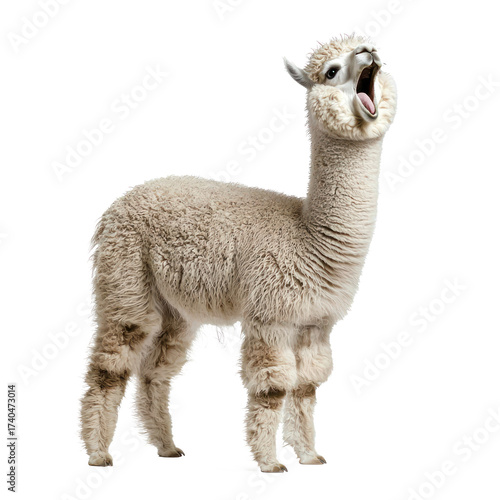 Obraz premium Alpaca spitting An alpaca stands with its head raised, mouth open, mid-spit. full length isolate on transparent background