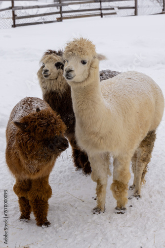 © Denis Tuev, Fototapeta premium alpacas in winter