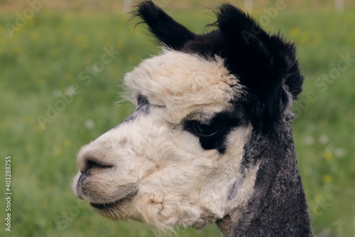 © Manfred Richter, Obraz premium Alpaka mit schwarz weiss Fell