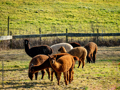 Fototapeta premium Alpakas grasen auf einer Weide