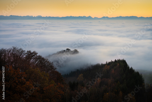 © fotofrank, Naklejka premium Alpensilhouette am Horizont eines Neberlmeeres