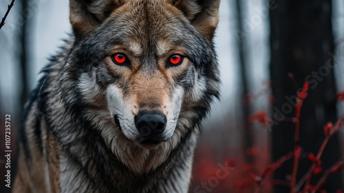 © Vexelion, Naklejka premium Alpha wolf with striking red eyes