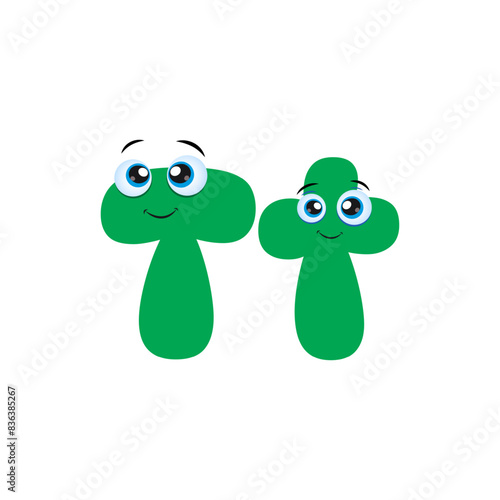 Obraz premium Alphabet Cute Green letter T with eyes. Cute children ABC alphabet flash card...